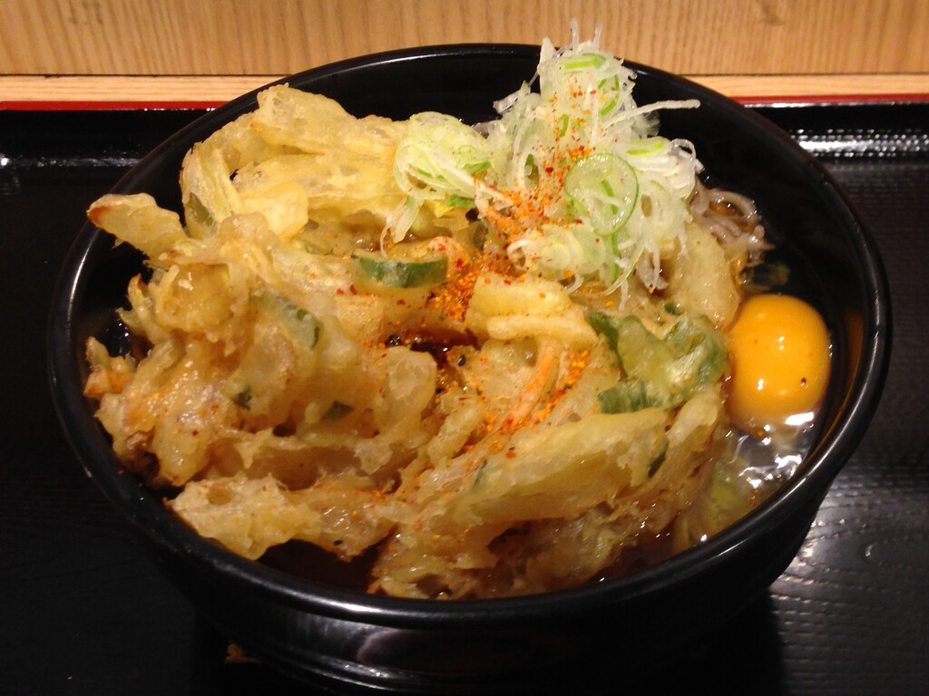 茹で麺を湯掻いて揚げ置きの天ぷらを乗せて、ネギを入れるか聞かれて当然イエス