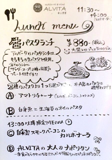 ミートソースも捨て難いよなぁ。カルボナーラも魅力。