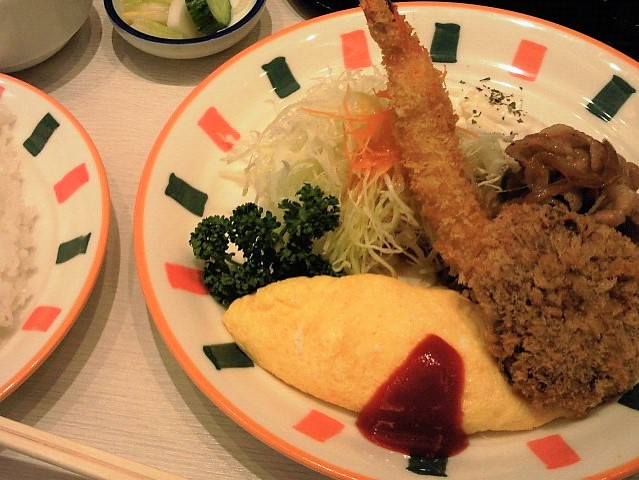 こちらは只の洋食屋さんではなく、少し他とは違う味や内容になっているのが特徴。例えばコンソメスープに浮かぶのは生の豆苗だったり、付け合わせに人参とポテトに何故か大根w一味の違いを楽しむのもこの店ならでは。