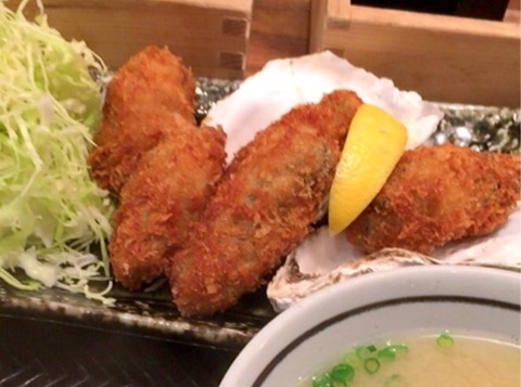 海鮮丼に、牡蠣フライの付くメニューもあり、わっぱ飯もありますが、ココはストレートに、日本一のカキフライ定食。4個 1000円。5個 1280円。ン?計算合わないけどまぁイイか。