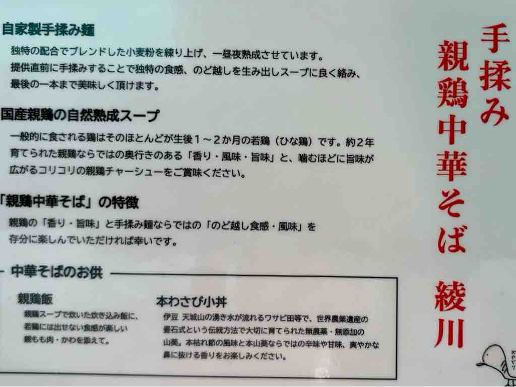 親鶏で取ったスープが自慢のラーメン店