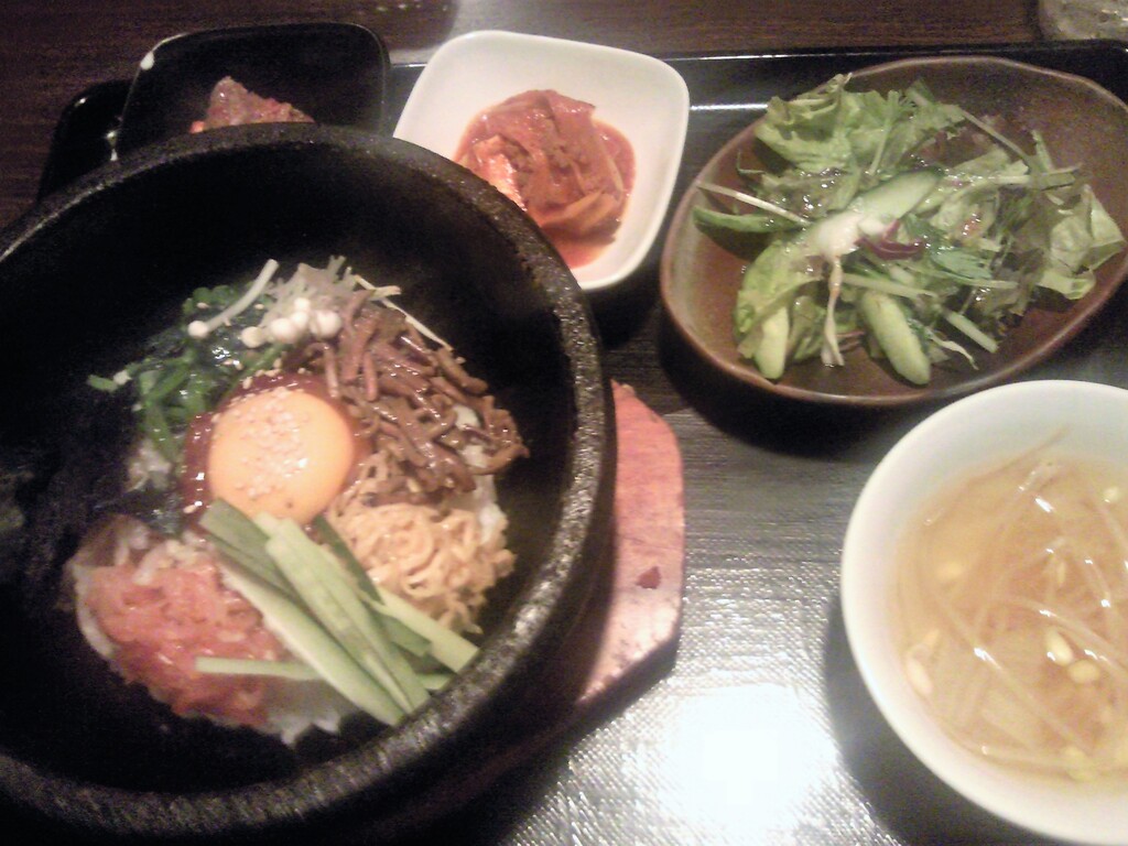 こちらのコリアンダイニングで石焼ビビンバ定食です。