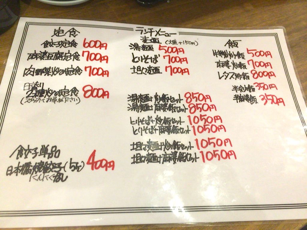 次回は麻婆豆腐でしょうが、ラーズーチー 辣子鶏や黒炒飯、水餃子もあるんですね。(夜メニューですね)