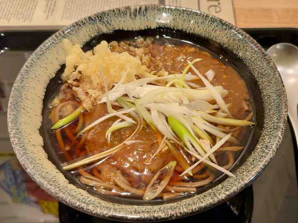 カレーは結構スパイシー、蕎麦つゆと絡むとちょっと塩辛い感じがします