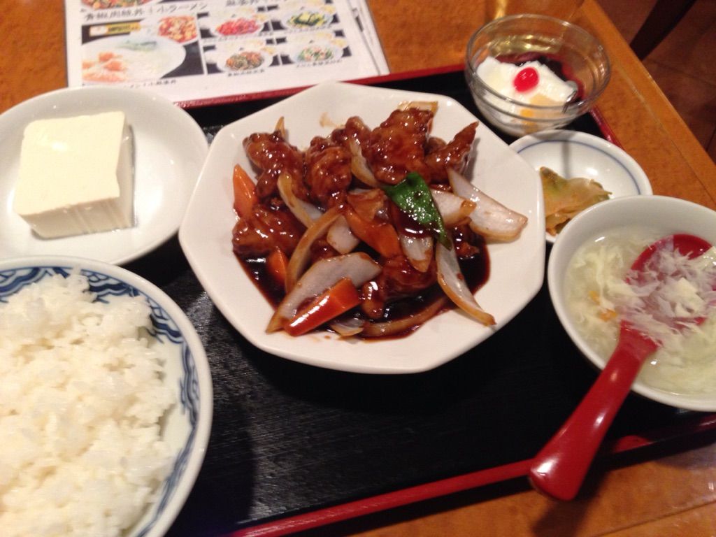 あちらの女性おひとり様はアジフライ2枚の定食を召し上がっています。
