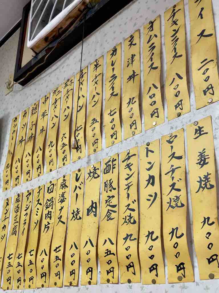 壁面にはズラリとメニューが並び迷いますね。一人でいただくにはちょっと多めの一品料理。いろいろ考えますがなかなか思う様なものがありません。